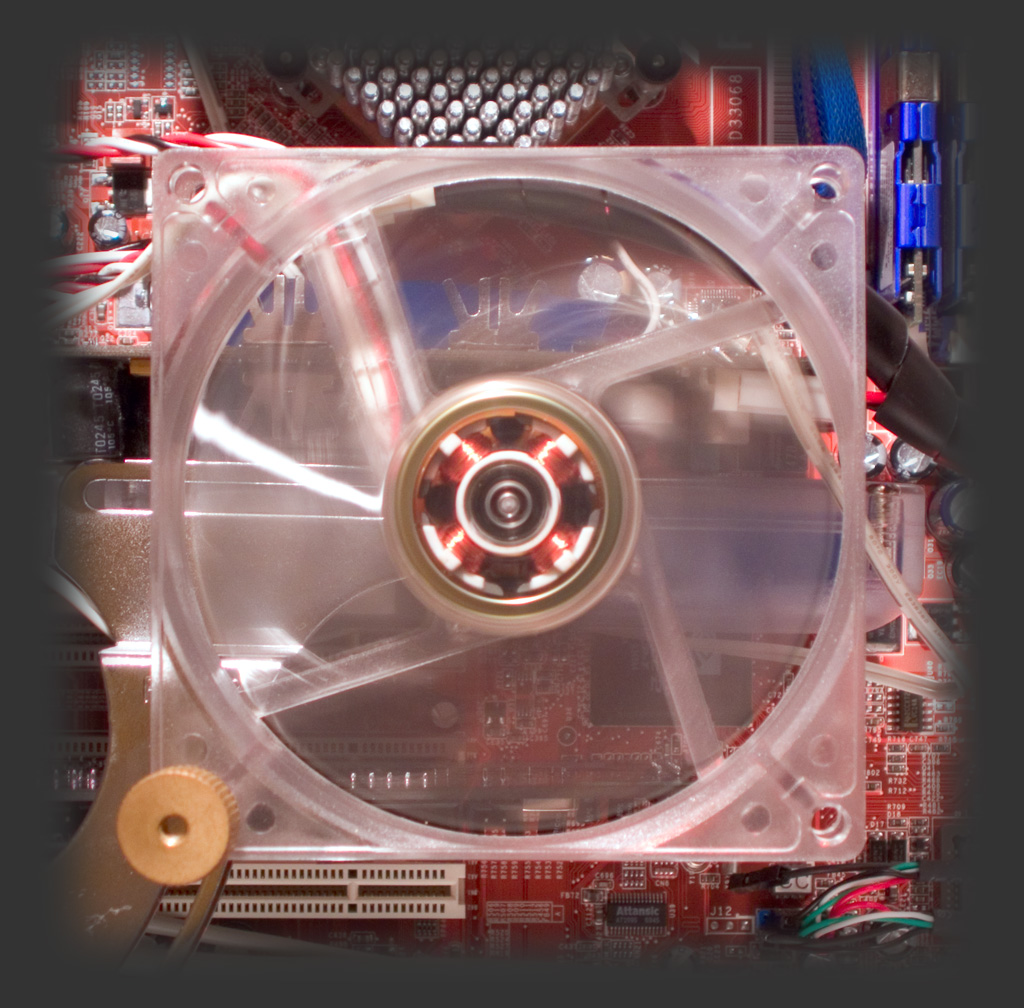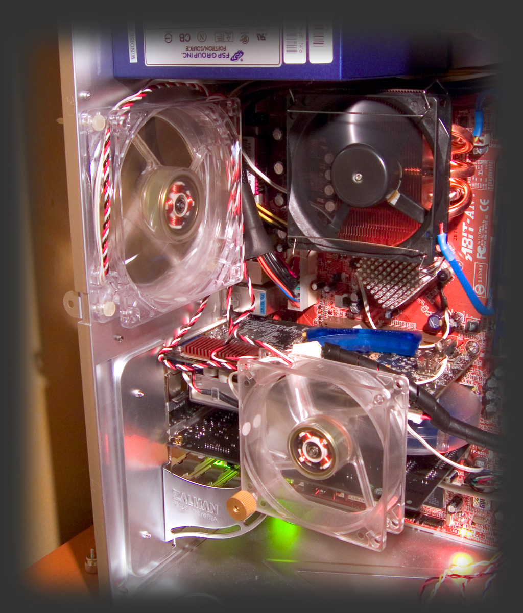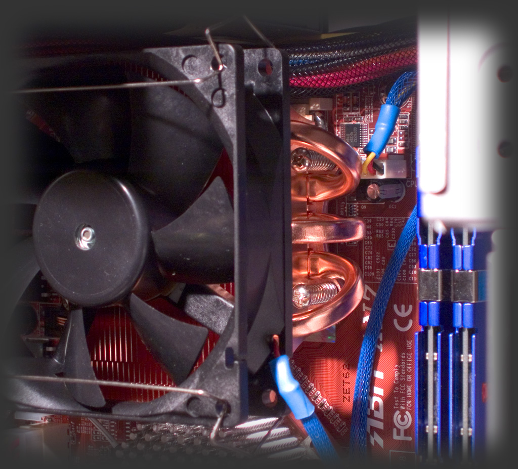 Thermalright SP-97, Arctic Silver V, Panaflo 92mm M1B, powered and regulated by